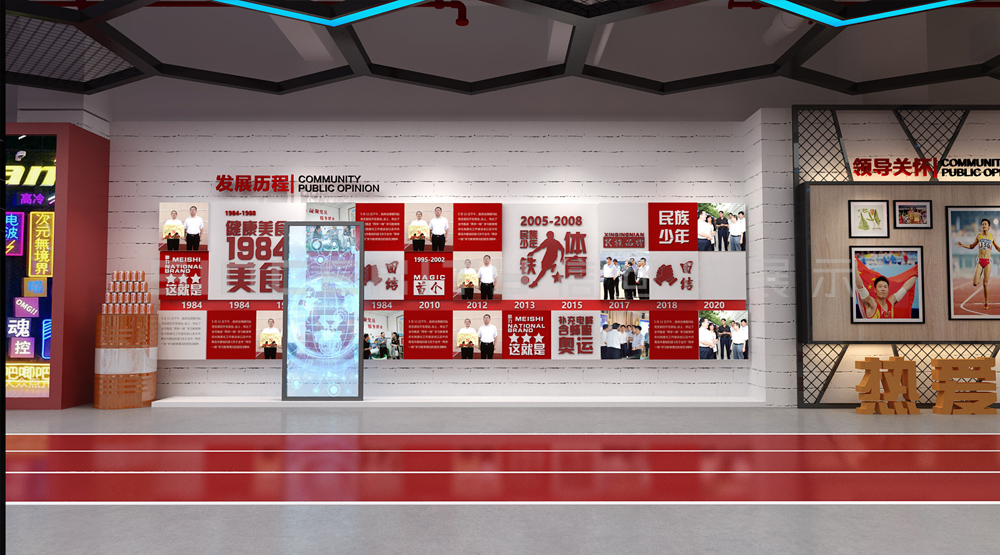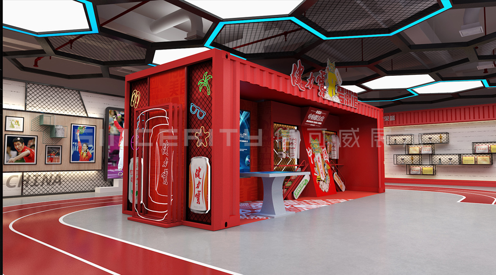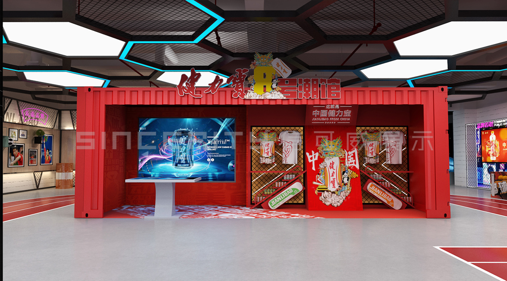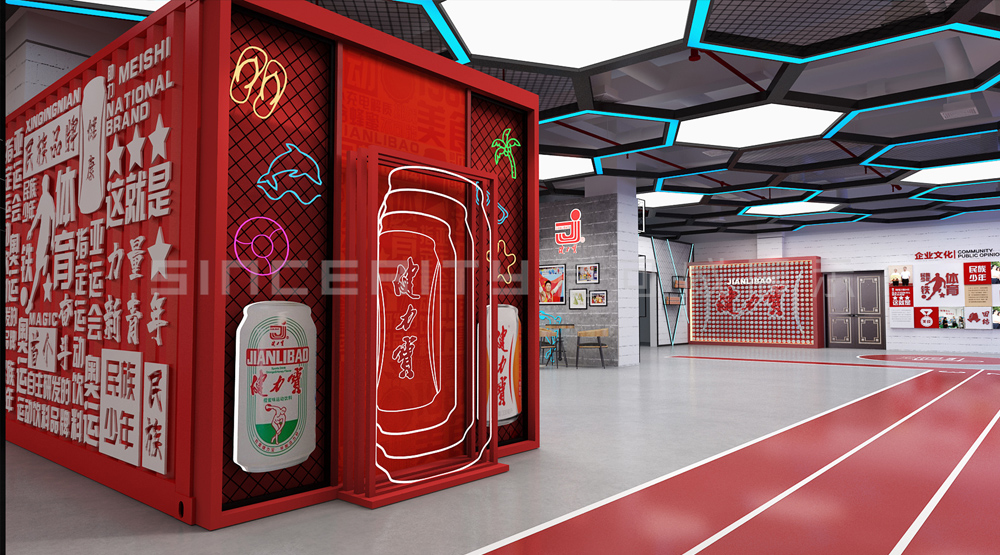 健力寶主題展覽館改造設(shè)計項目,信可威的設(shè)計方案以“科技感、現(xiàn)代感、互動感”為主,貼合健力寶品牌主色調(diào)“中國紅”,融入健力寶企業(yè)文化,簡單的增加國潮性元素,同時凸顯了體育品牌,增加了互動體驗區(qū)拍照區(qū),加強互動體驗感,給參觀者留下深刻印象。