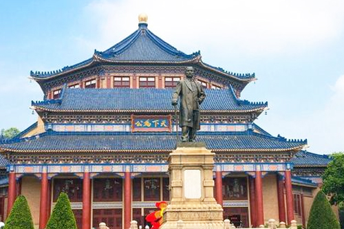 廣州人民和海外華僑為紀(jì)念孫中山先生集資興建的。中山紀(jì)念堂于1929年1月動(dòng)工,1931年11月建成。1956年,重鑄的高5米的孫中山先生銅像屹立在紀(jì)念堂前。1963年對紀(jì)念堂進(jìn)行了大規(guī)模翻修,屋頂全部采用藍(lán)色琉璃瓦,在6萬多平方米的公園四周增建了鐵柵欄,在園內(nèi)栽種了很多樹木、花卉。